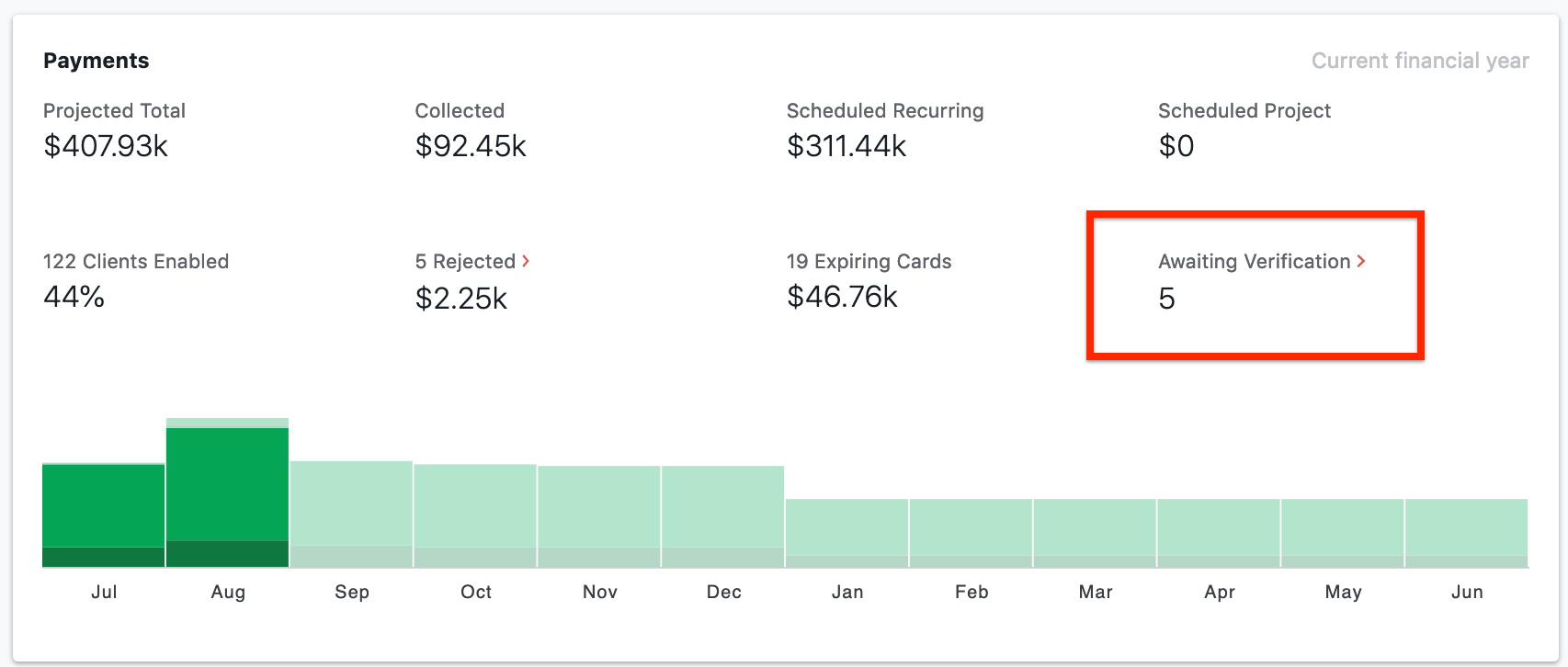 Access a list of clients with verifying payment methods from your dashboard